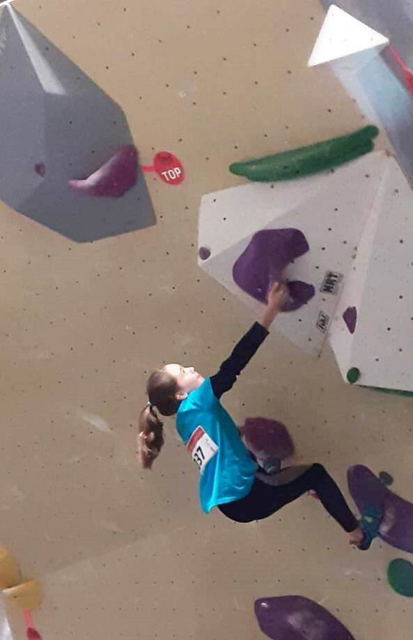 - La constancia y persistencia de los más pequeños en los bloques preludia una generación de relevo muy competitiva. En la foto Emma Rodríguez (Foto Prensa FMM)