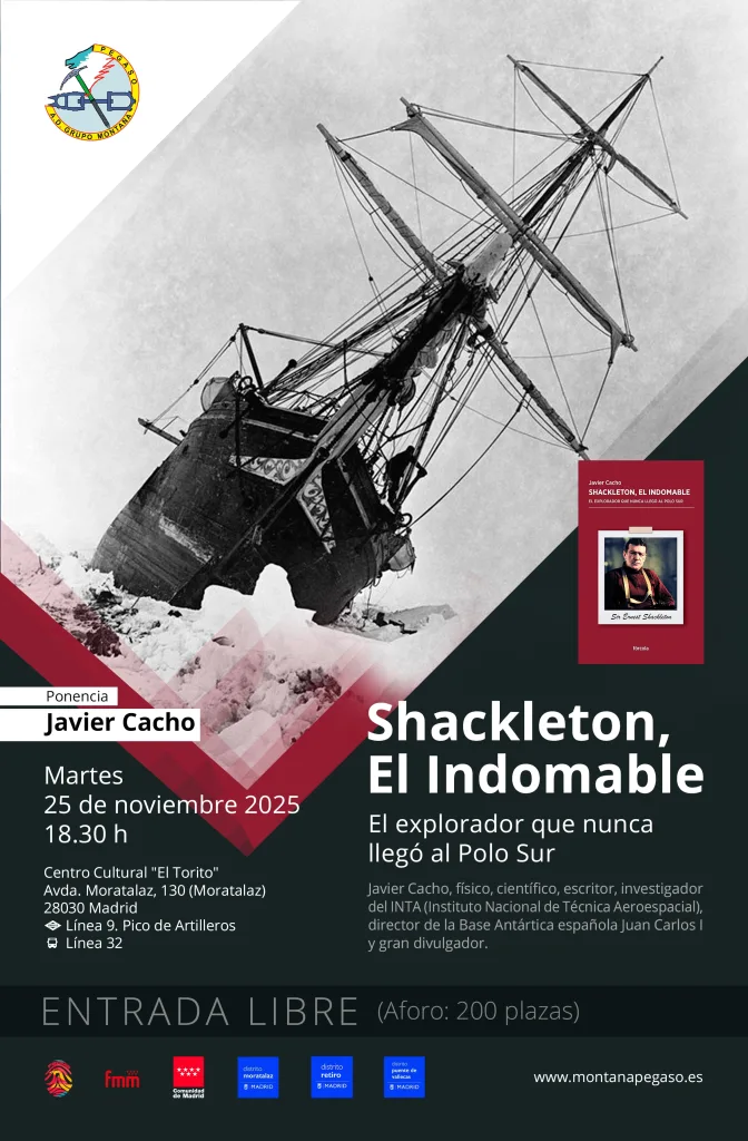 La sección de Cultura de la A.D. Grupo de Montaña Pegaso invita a toda la comunidad montañera a una nueva cita con la historia de la exploración polar: la ponencia “Shackleton, El Indomable: el explorador que nunca llegó al Polo Sur”, impartida por Javier Cacho Gómez, físico, científico, escritor y divulgador experto en la Antártida.