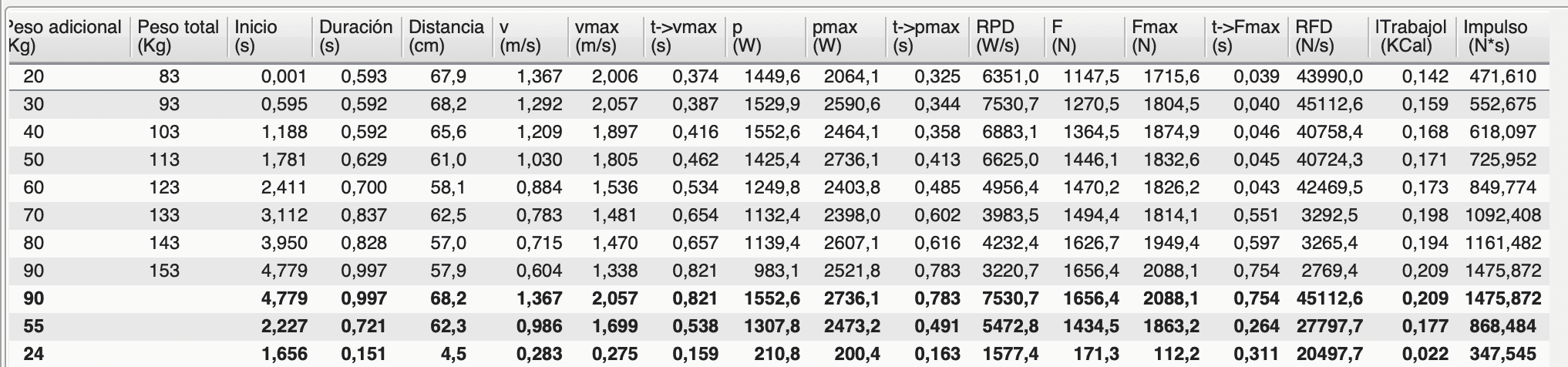 • En caso de no disponer de encoder, el carácter del esfuerzo una vez comprendido, se ha mostrado como un buen indicador de la magnitud de la carga (Hernández-Belmonte et al., 2021).