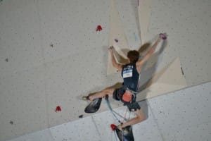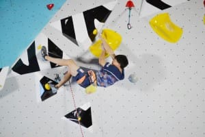 Guillermo Peinado dió importantes muestras de evolución en la pared de dificultad con los grandes del circuito mundial. Su clasificación a semi finales le dejó en el puesto 20º de la general (Foto IFSC)