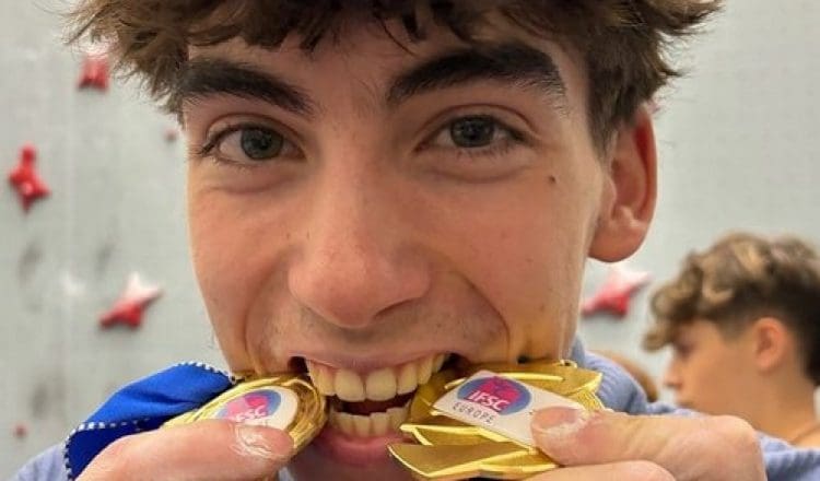 Guille Peinado se titula campeón de Copa de Europa de dificultad con dos oros y un bronce en tres pruebas acumulativas. (Foto cortesía IFSC)