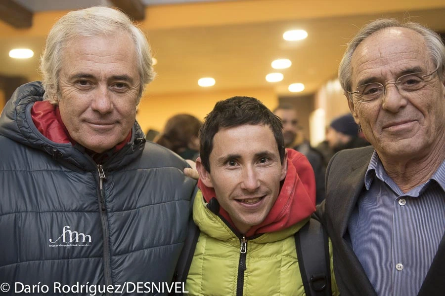 José Luis Rubayo y Joan Garrigos con otro campeón del mundo: el escalador Ramón Juliá «Ramonet» (Foto cortesía de Darío Rodríguez/Desnivel)