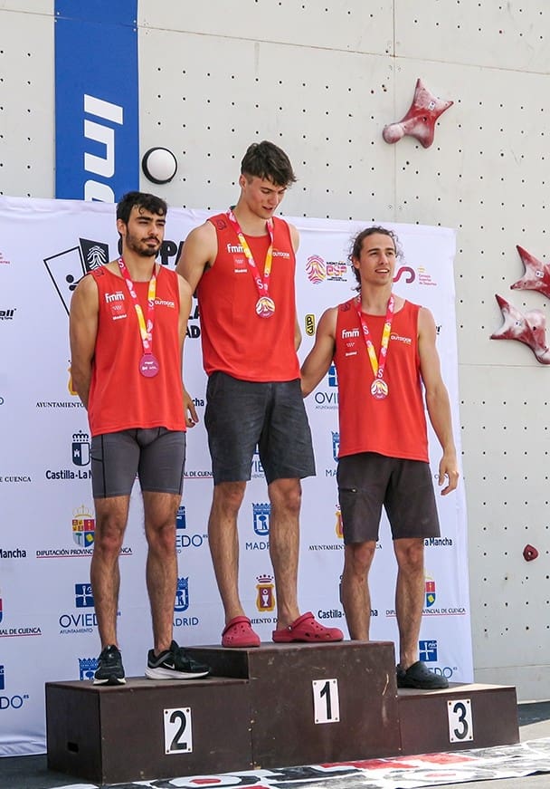 Destacaron en la jornada los escaladores que subieron a cinco de los ocho podios de velocidad, acumulando cinco preseas doradas y dos de bronce en las categorías sub 16, con oros de Ayla Rubio Ayala y Santiago López García, sub 18 con oros de Aída Miguel Ochoa y Alberto García, más el ercer lugar de Amaya del Pozo y Absoluta masculina con oro para Alejo Bernabé y bronce para Alejandro Rivas.
