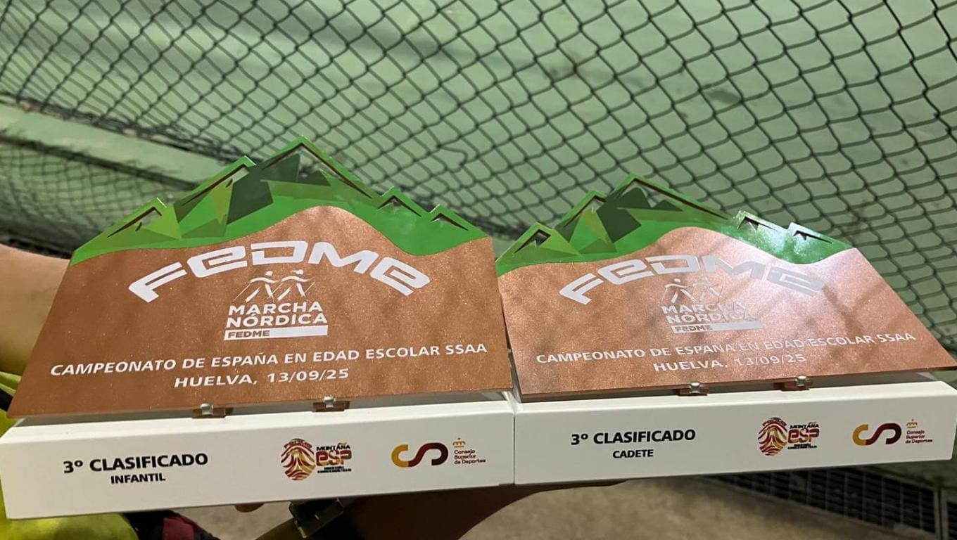 Los componentes del equipo madrileño de marcha nórdica en edad escolar (infantil y cadete), que participaron en el Campeonato de España Individual y de Selecciones Autonómicas de esta categoría, el pasado sábado 13 de septiembre, se subieron al tercer lugar de los podios de equipo en las dos divisiones.